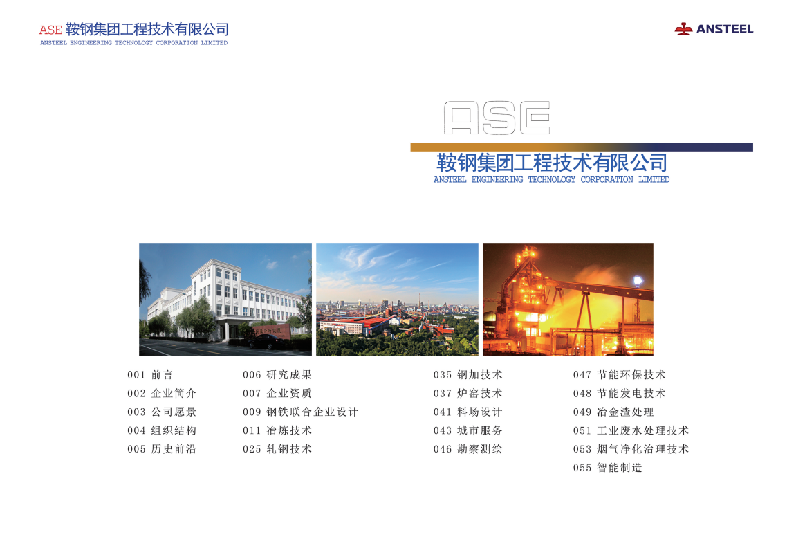 鞍鋼集團工程技術有限公司(ASE)地處國家AAAAA級風景名勝區(qū)—千山腳下,是原鞍鋼集團設計研究院改制的國有控股混合所有制企業(yè),至今已有60多年的發(fā)展歷史,被譽為“中國冶金設計隊伍的搖籃”,公司注冊資本6.49億元。具有工程設計、工程咨詢、勘察測繪等8項國家甲級資質(zhì)和總承包資格,連續(xù)多年被遼寧省認定為高新技術企業(yè),是國家“雙百行動”和“混改”雙試點企業(yè),是全國勘察設計行業(yè)百強企業(yè),2021年排名位列第81名,入選國企混改典型案例,位居前列。